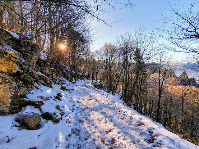 Ridiscesi alla forcella si continua per il sentiero 401 che sale dolcemente fino al monte Rione, punto più alto del percorso, ed al relativo rifugio in un'altra mezz'ora circa.